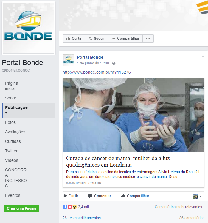Facebook: Curada de câncer de mama, mulher dá à luz quadrigêmeos em Londrina